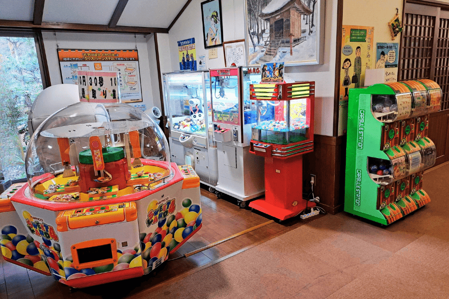 フロントと脱衣場の間の休憩エリアに、新しくゲームコーナーを設置しました。 お菓子がとれる「スウィートランド」や人気のカプセルトイ、懐かしのクレーンゲームなど、お子様から大人まで楽しめるラインナップです。 マッサージ機や自販機もございますので、湯上がりのひとときをゆっくりとお楽しみください。