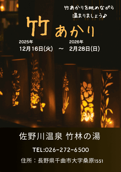 竹林の湯にある、千曲市の指定保存樹林の竹を